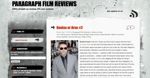 A small, self-serving, site like Paragraph Film Reviews will be under the radar forever. I don’t have major aspirations of going pro, getting published or winning awards (although wouldn’t turn stuff like that down if they came my way!!). Knowing there’s a hardcore of about 20 people who care enough about what I write to check the site regularly and chip in with their own comments and opinions is always reassuring.