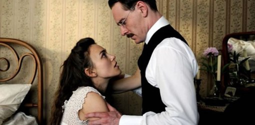 That’s not to say that the feud between the psychoanalytic master Freud (Viggo Mortensen) and his thoughtful analytic practitioner Jung (Michael Fassbender) doesn’t have its moments of compelling drama, nor does it mean that the taut sexual tension in the doctor-patient relationship between Jung and the crazy/crazily intelligent Sabina Spielrein (Keira Knightley) isn’t an interesting study of sexual desires and repressions. But Cronenberg’s movie, largely due to Hampton’s script, is at war with itself, unable to decide what it is and how it wants to address its internal contradictions. The balancing act is made especially difficult by the fact that the battle of the minds is a rather understated conflict while the battle of the sexes is garishly over the top due to Knightley’s performance. Is it a movie of ideas or a movie about Jung’s self-examination through those ideas?