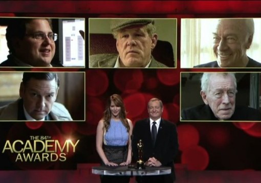11:34 P.M.  Just one big montage of all the Best Picture nominees… I guess this will do.
