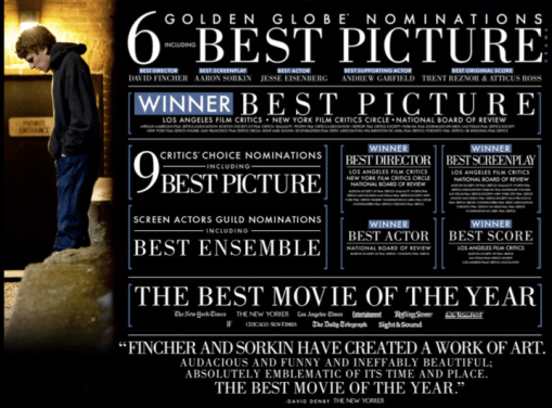 9:35 P.M. “The Social Network” wins AGAIN! That’s three! Hooray, things are looking up for team Facebook!!!